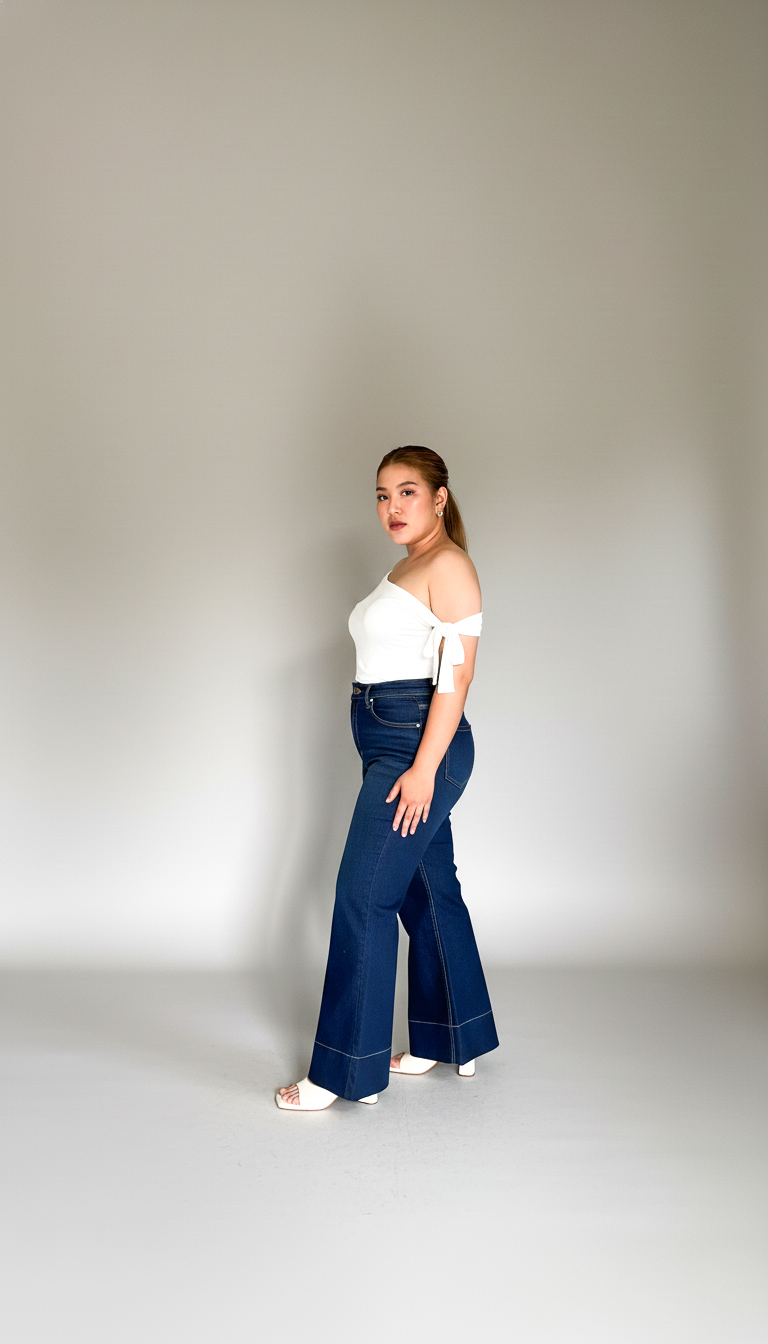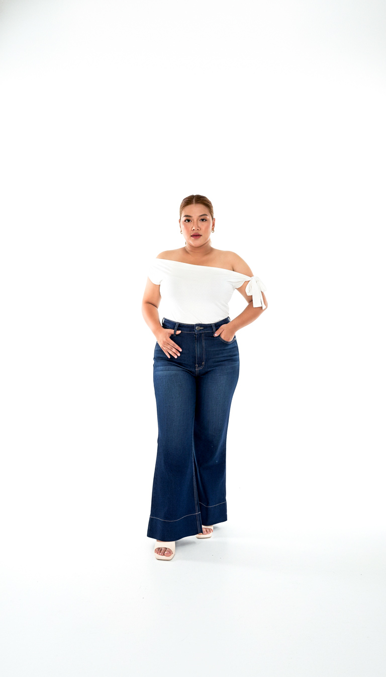 Celana jeans high-waist khusus plus size dengan bahan elastis yang nyaman dipakai seharian.