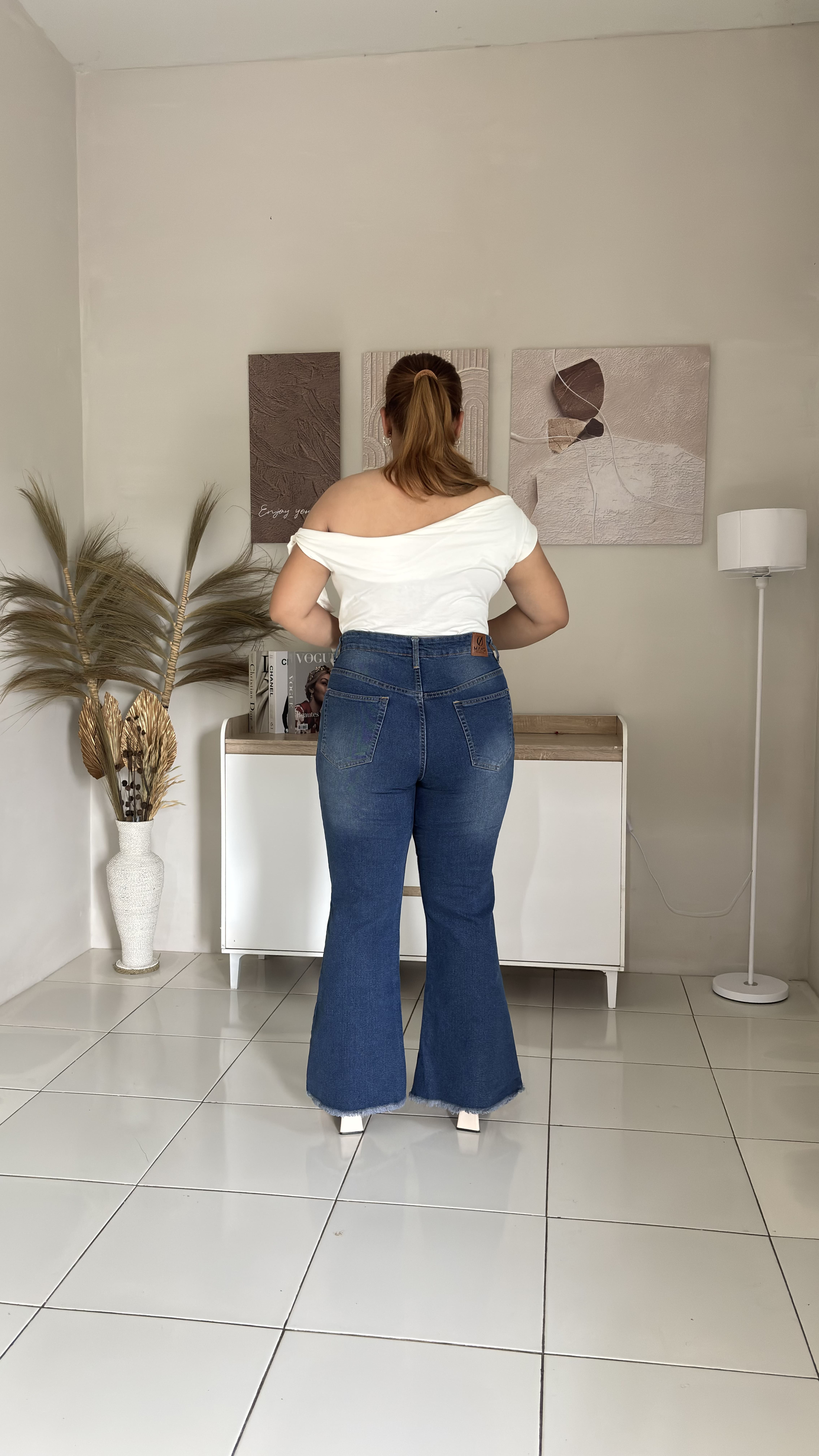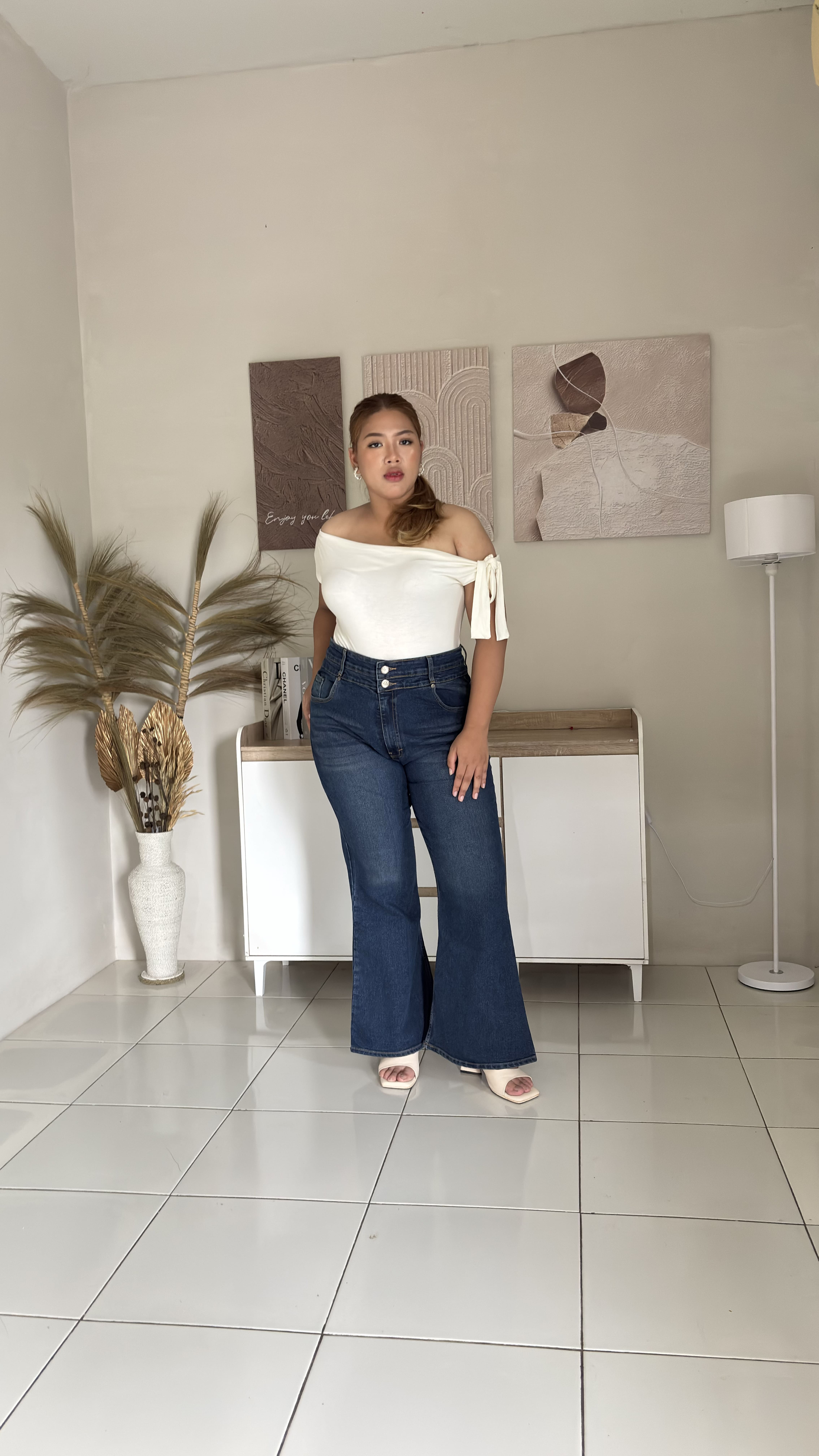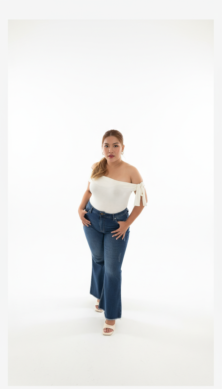 Celana jeans high-waist khusus plus size dengan bahan elastis yang nyaman dipakai seharian.