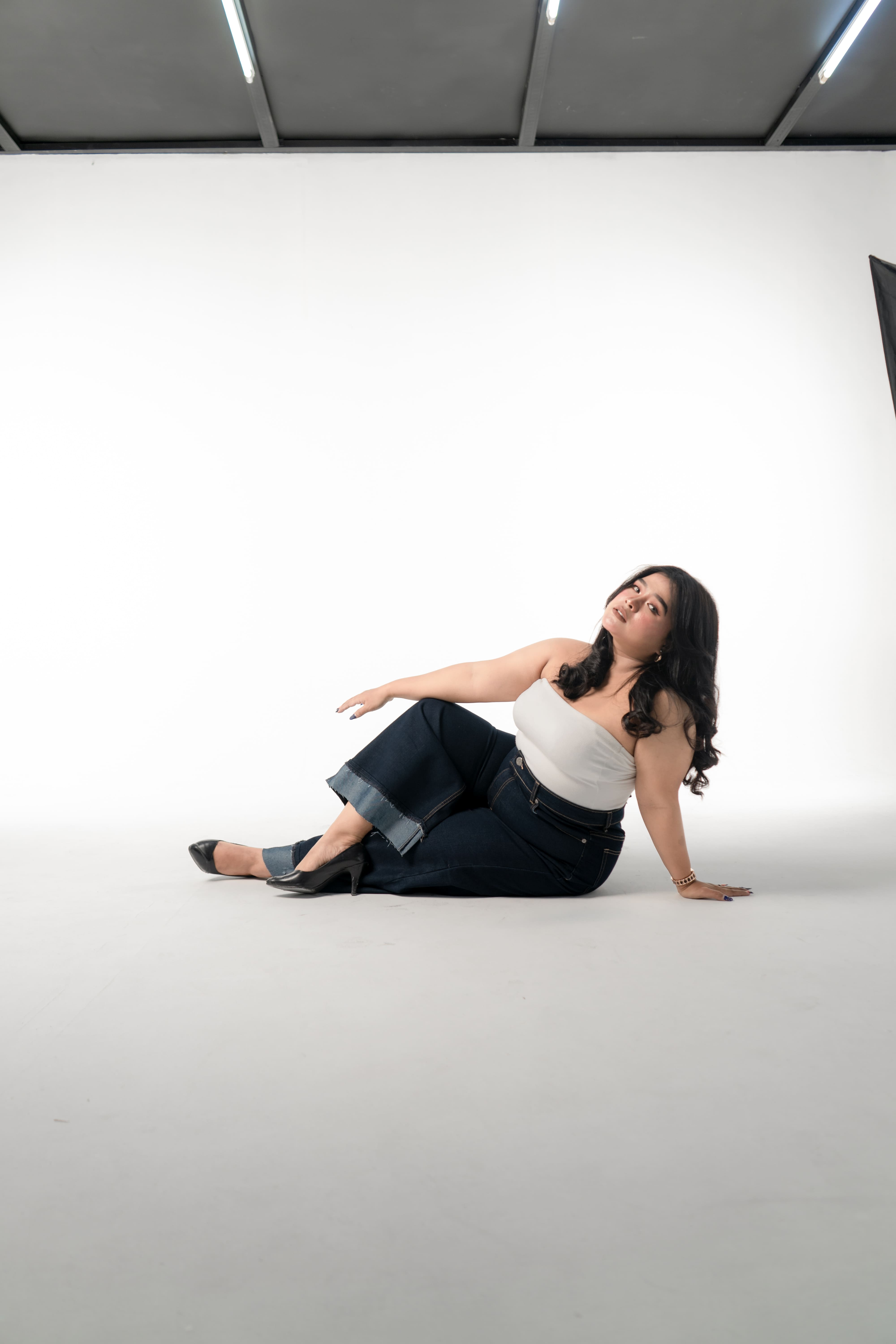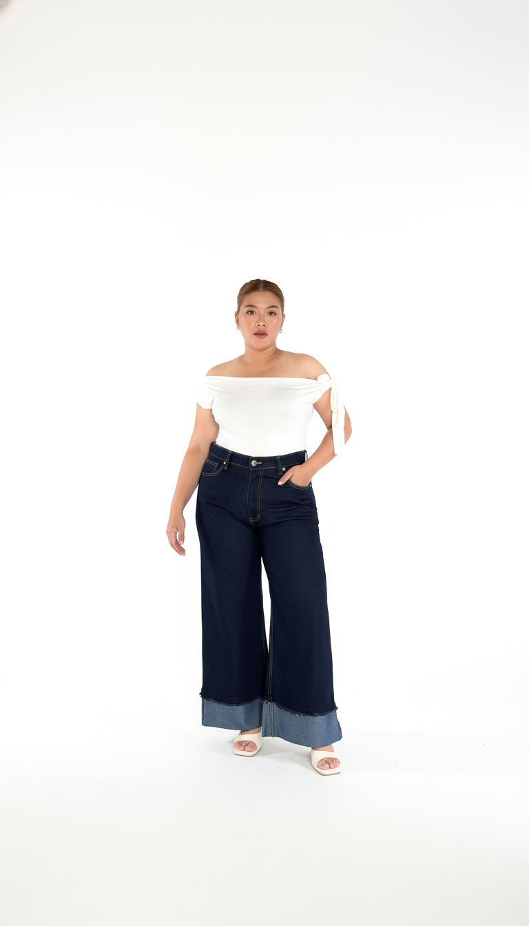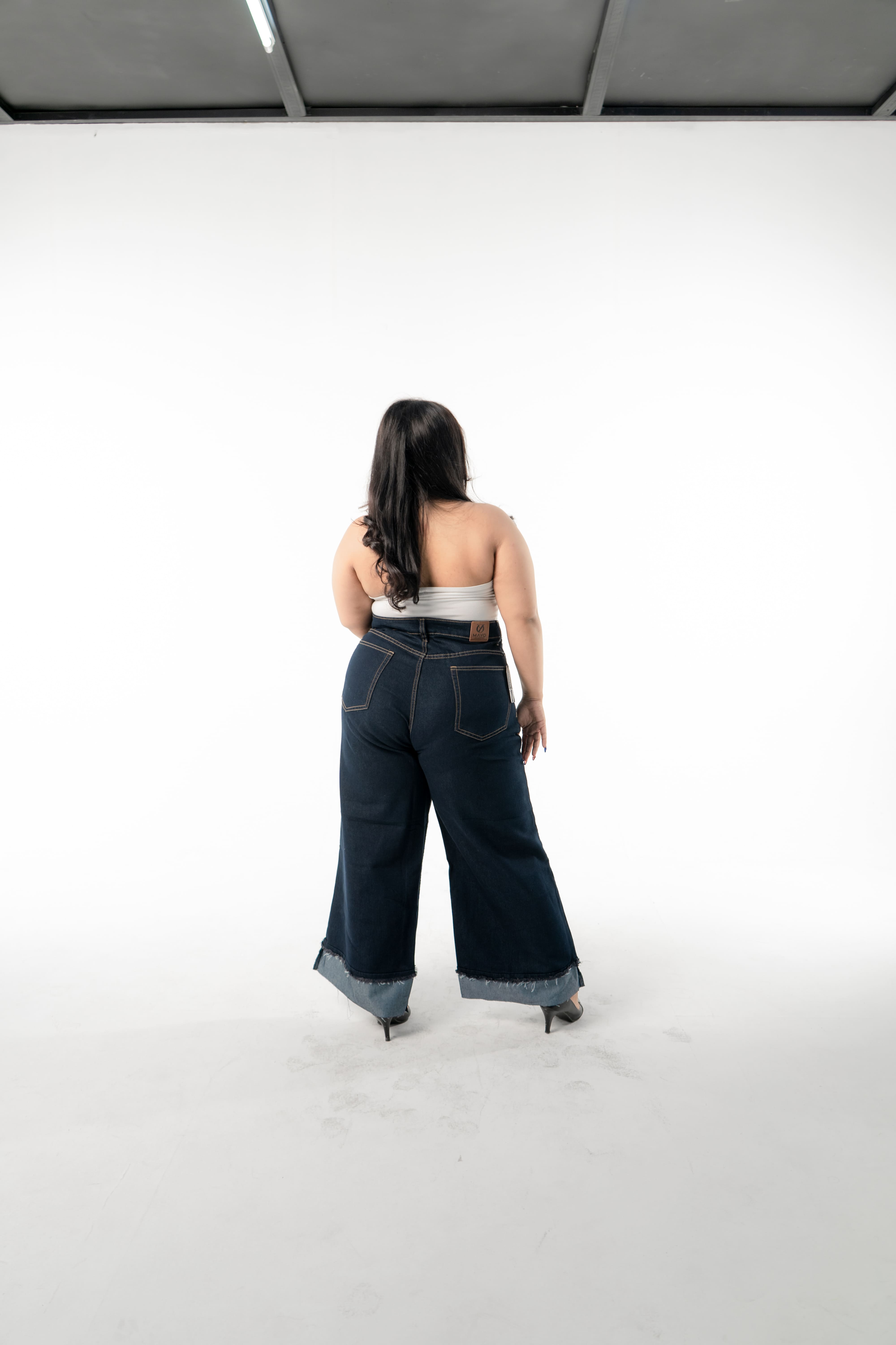 Celana jeans high-waist khusus plus size dengan bahan elastis yang nyaman dipakai seharian.